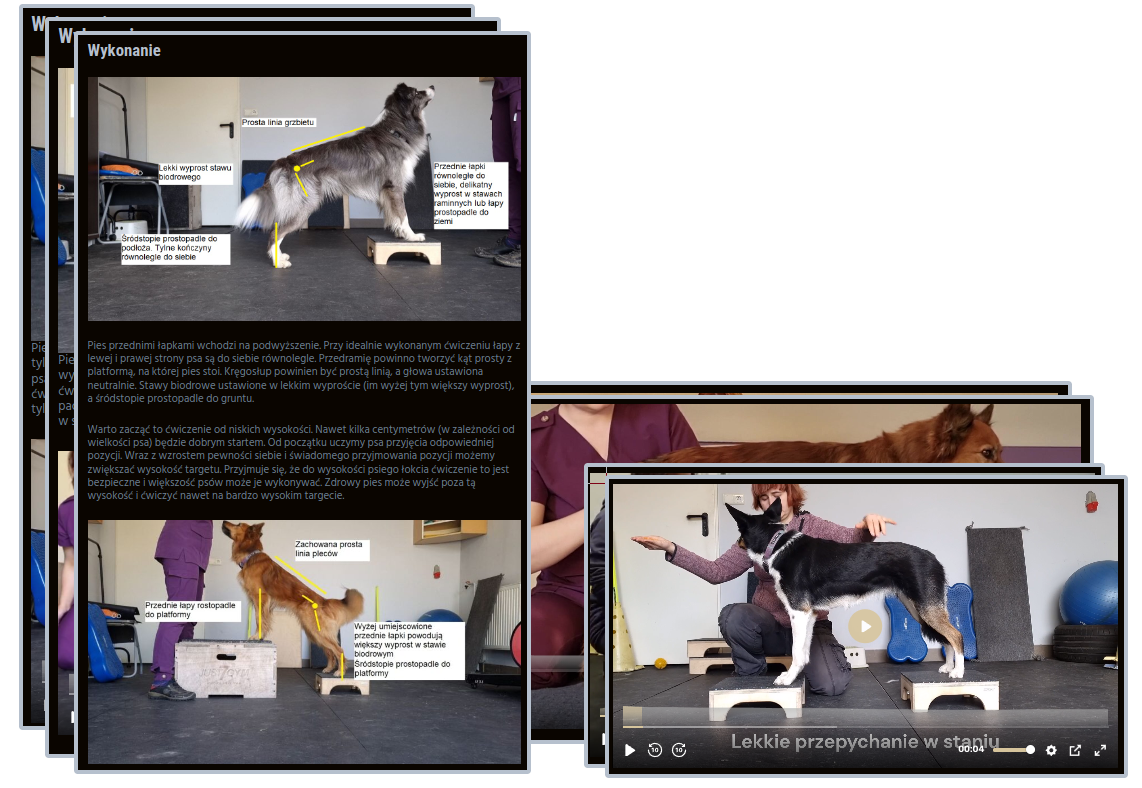 filmy z ćwiczeniami zawierają nie tylko film z poprawnym wykonaniem ale jeszcze proces nauki psa zachowania